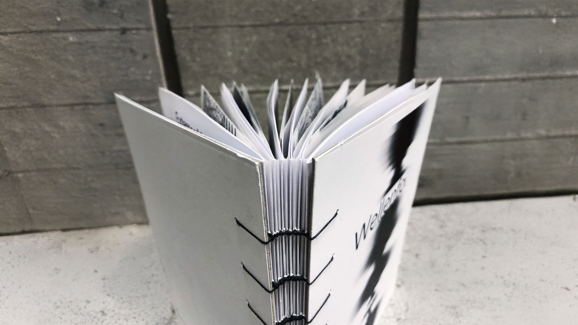 The experimental book "Wellenform" explores the sounds of water, their effect on people, and how they can be visualised. Noises such as ice, a river, rain, a waterfall and boiling water were selected for translation onto a visual level. These visuals are all based on the waveform of these sounds, which is then modulated to emphasise the feeling and impression of the sound. This means the visuals can be viewed from sensory and analytic perspectives.